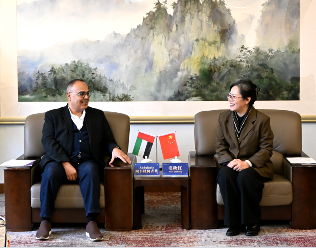 Mao Qiuhong expressed her welcome to President Abdulaziz and his delegation and, on behalf of the university, thanked Abdulaziz for his consistent support for the talent cultivation in the Arabic Department of ZJSU and for cooperation and exchanges with the UAE. She stated that the two sides have a solid foundation for cooperation. By leveraging the "ZJSU China Cultural Center in the UAE," they could explore training courses and programs such as language, culture, and Business Chinese, using language training as a bond to connect the Chinese and UAE people. Meanwhile, she expressed the hope to join hands with the Sharjah Institute to strengthen the building of multilateral cooperation platforms, create new forms of civilizational dialogue, jointly explore the connotation of Chinese and UAE cultural heritage, and promote cultural exchanges and mutual learning.